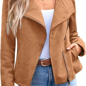 Women’s Faux Leather Jackets Suede Fall Fashion 2024 Outfits Winter Clothes Open Front Cropped Coat Outwear